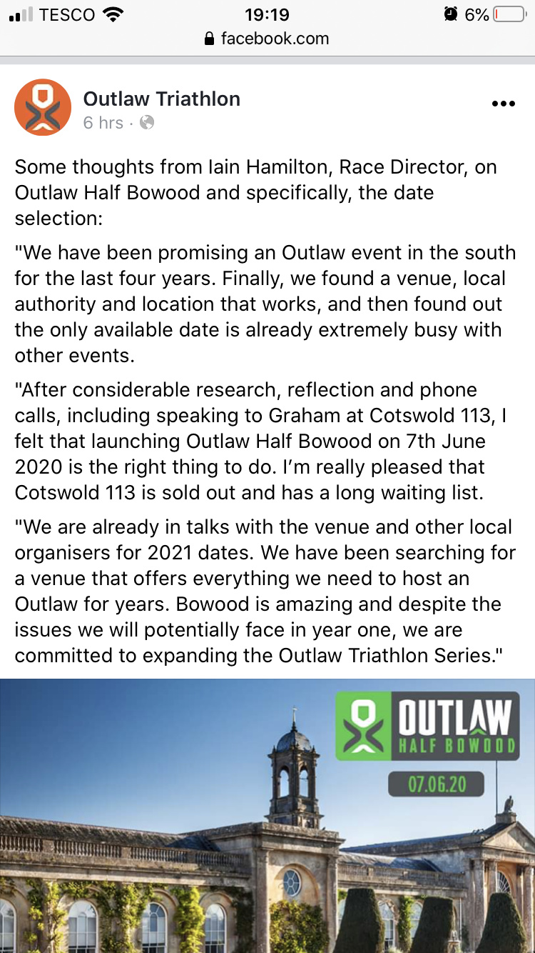 Although 113 is always a sell out, and is cheaper and faster than that Outlaw course. Will be interesting if the Outlaw âbrandâ will draw people away, itâs not ironman, but they do seem to be expanding within the UK (well England anyway).