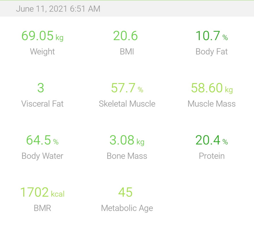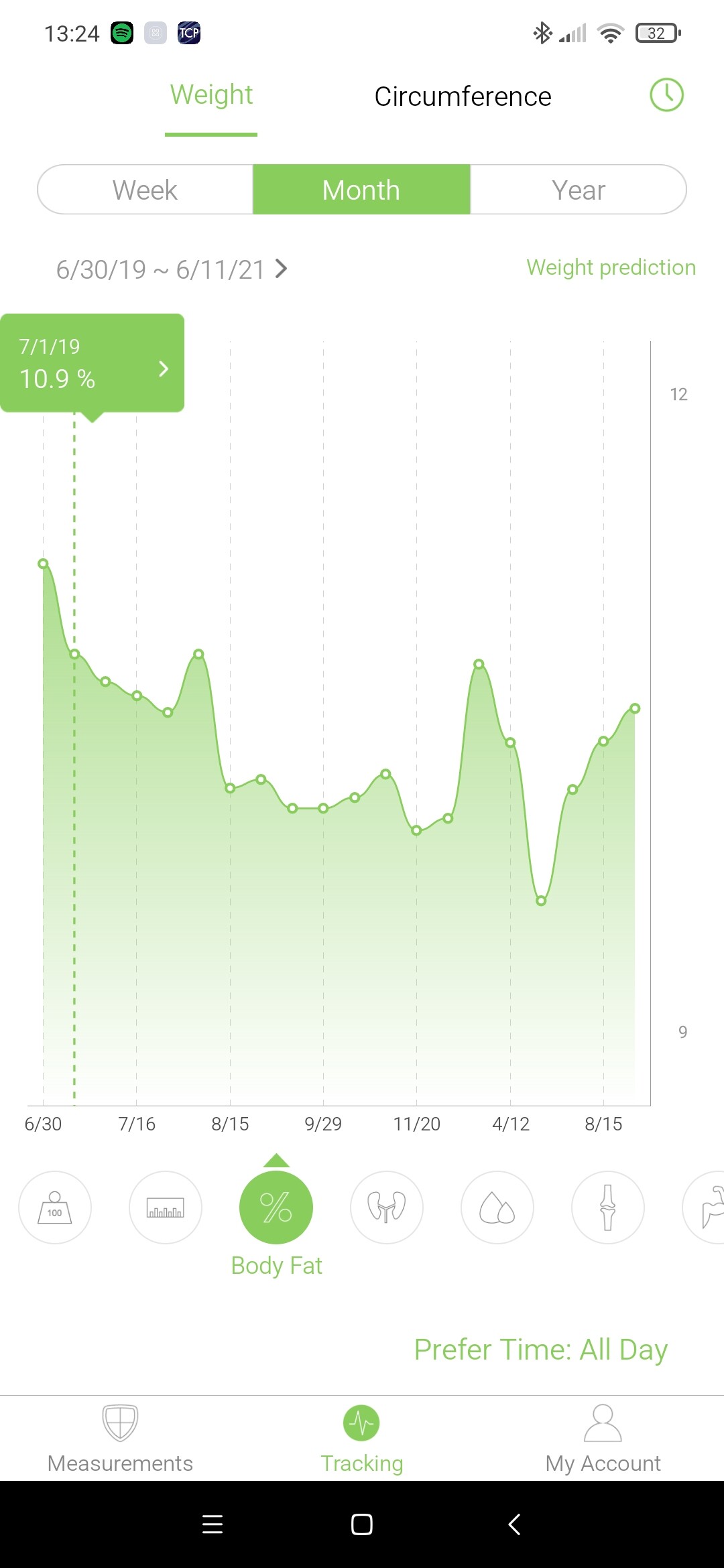 Not sure accuracy of BF % it says mine is much lower than I think it actually is. I reckon I’m about 18/19% and it’s come up with 13.5%