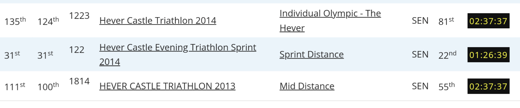 Was quite a good improvement, as the second event was 1500/40/10 versus my first ever tri which was 800/40/8