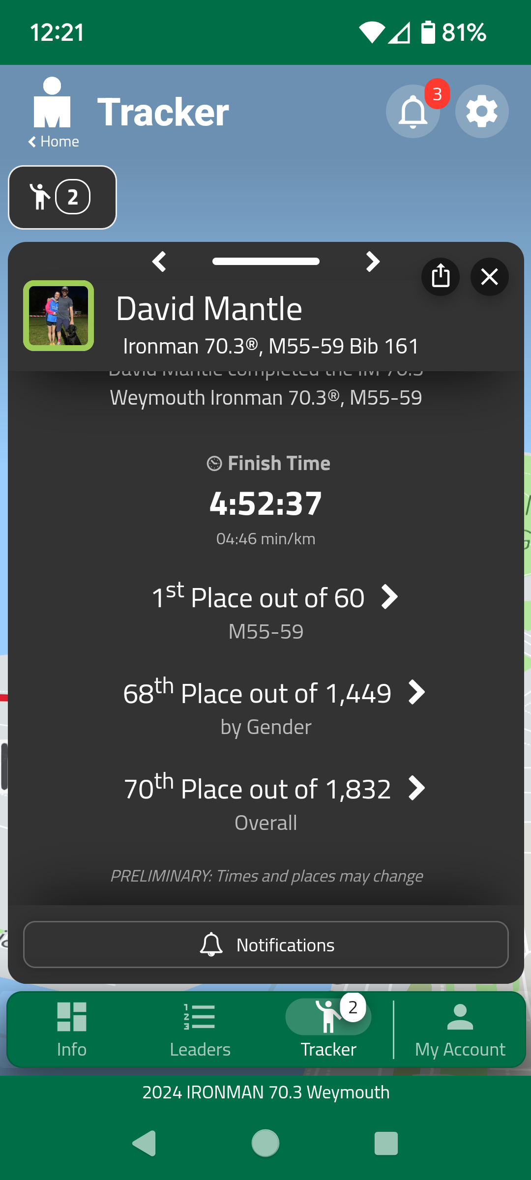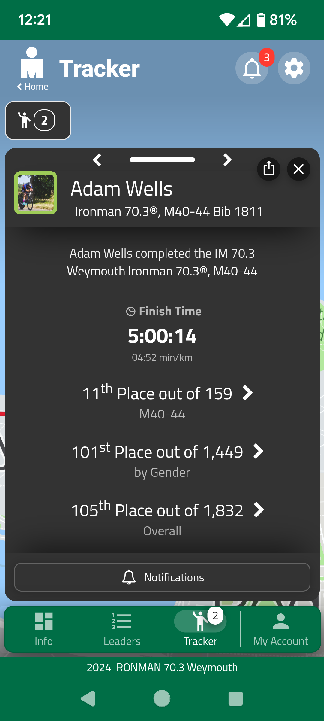 I’m guessing there was a discrepancy in the swim distance at one of the courses as @Sparky was a few seconds quicker than Big Dave, but 640th out of the water.