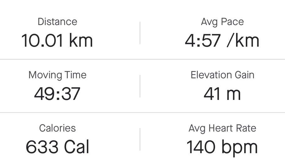 54.50 10km at 135bpm which is the same as last week, so my latest MAF improvement has stuck which is always nice!!