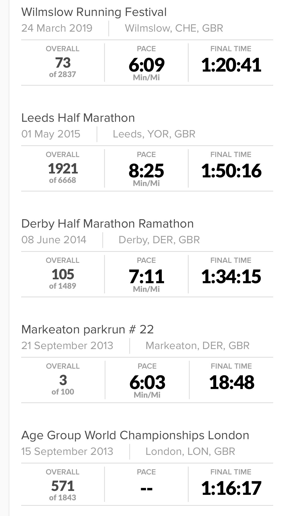 I “quit” it 2013…here’s my race history since then