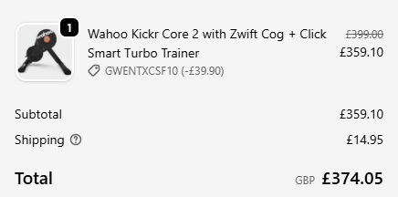 Mentioned about my turbo and he said he got an amazing deal on the latest Kickr Move, or some other whizz bang model. He said this left him his 2yr old original Kickr Core to sell.