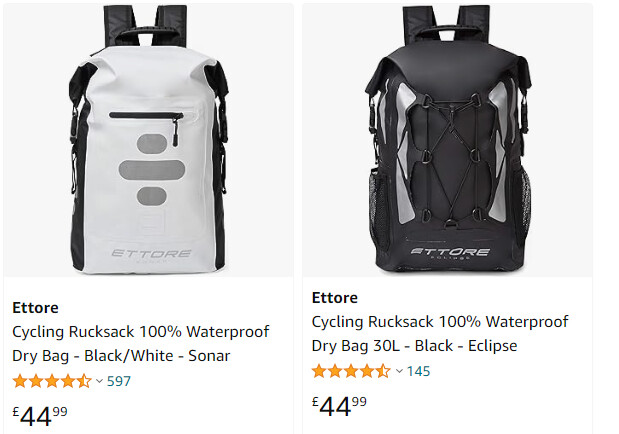 I’ve got the 30l, it looks huge but once the top has been rolled down it’s not really. Takes a (big) laptop, lunch, clothes and shoes. Very basic, just a big waterproof bag with straps on!