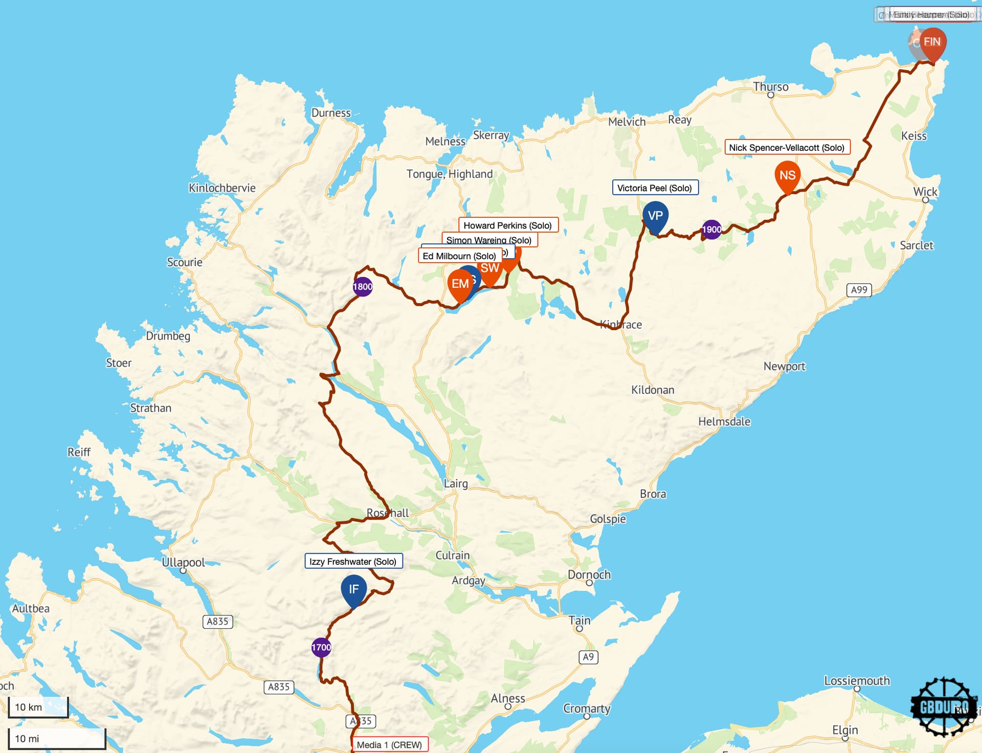 They seem to be neck a neck but difficult to know given the irregular updates … just over 100km to go!