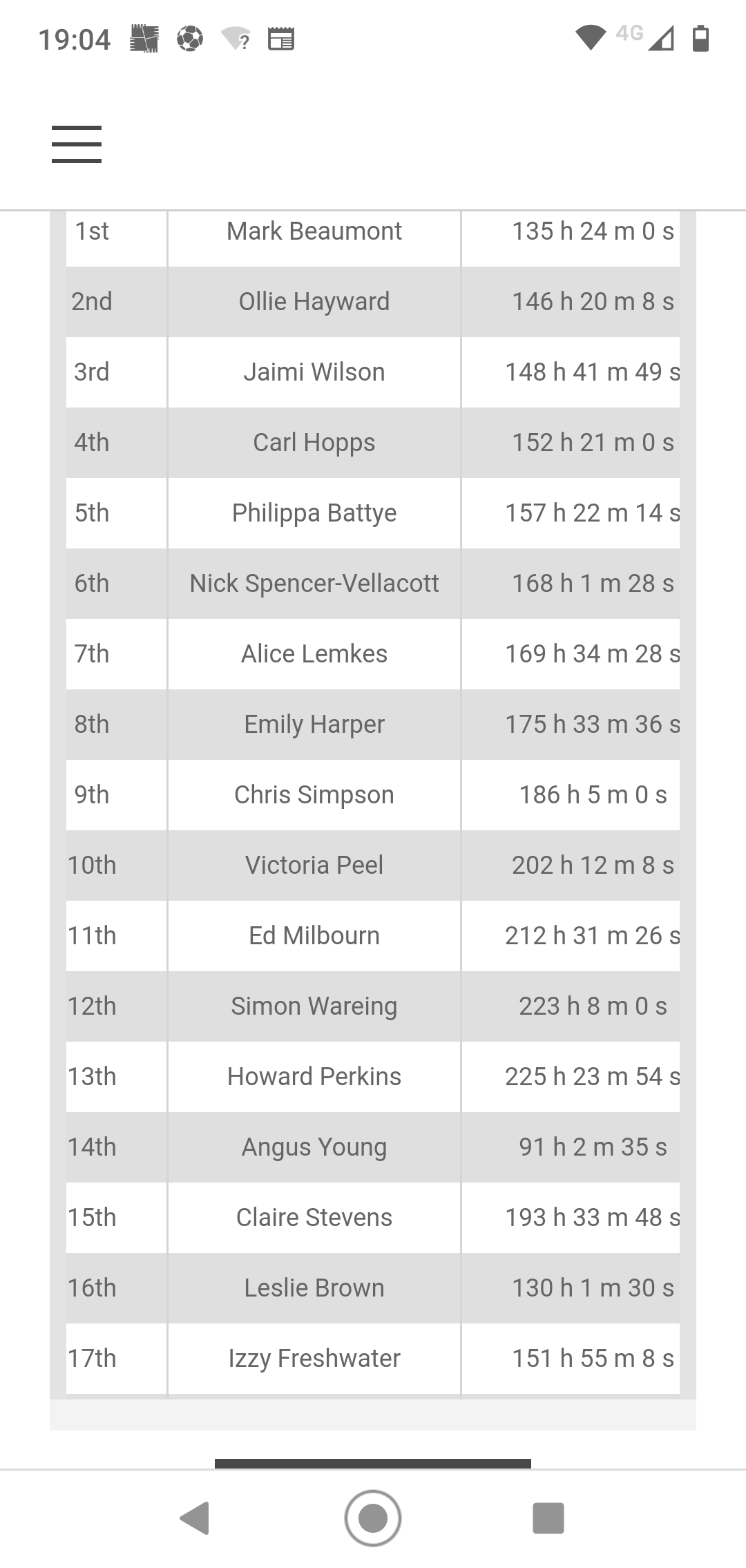 What’s the score with the leaderboard. Looks like 13th is last to finish so far. They have AY in 14th, behind him is the girl Ed was riding with earlier today who would surely have finished now, and certainly would have been past 193h if she had retired with the end in sight; which I can’t see happening. I get that others are DNFs.
