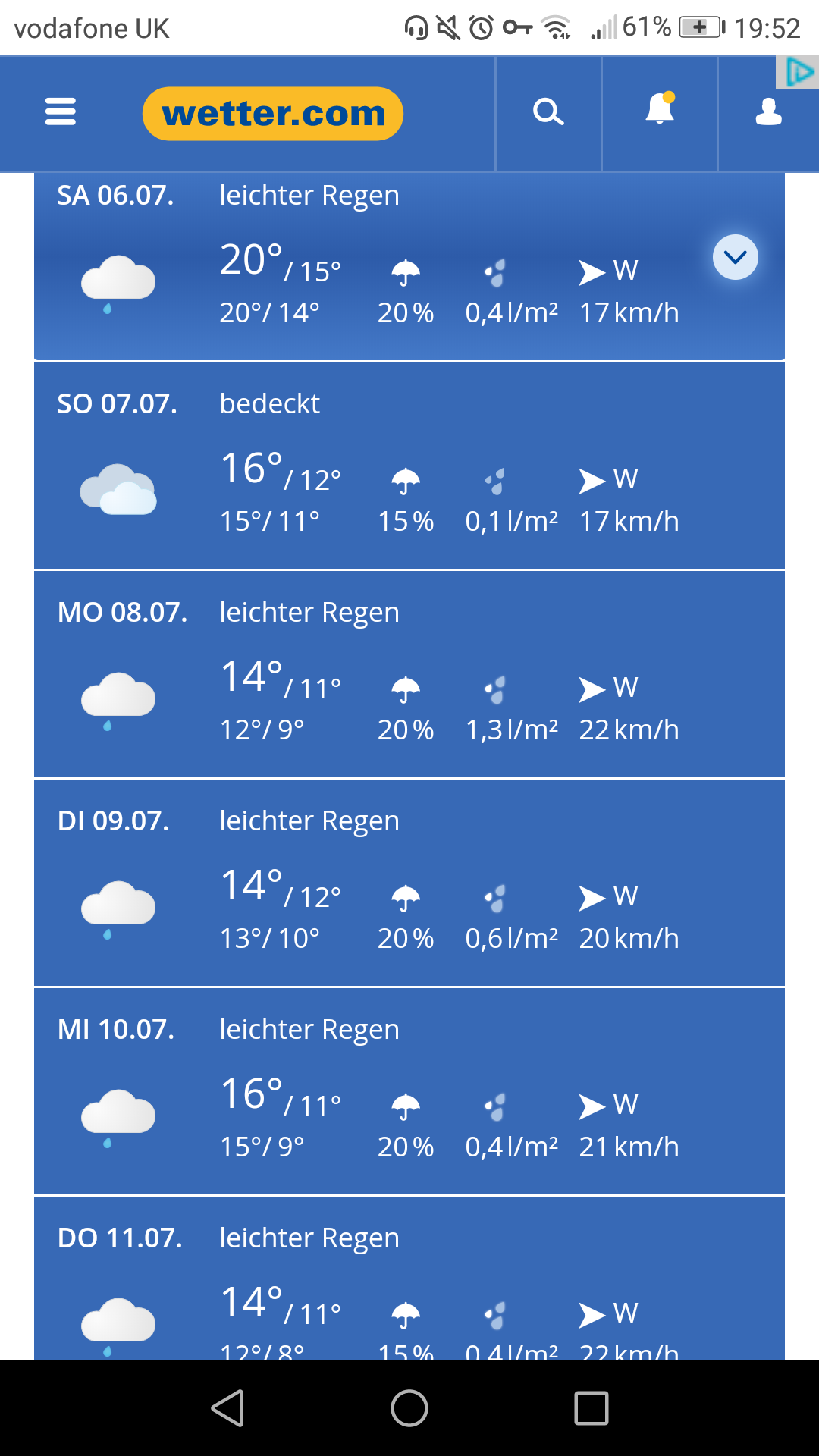Alster is 21 degrees today; fair bit of rain forecast week after next.