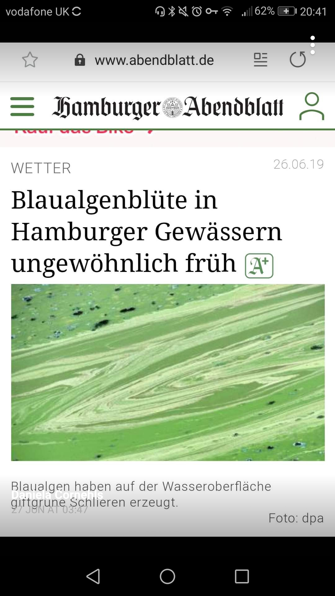 The problem with the Innenalster is that it’s a small body of water, so I presume it’s harder for the algae to disperse there - and we swim right through that bottleneck under the bridge where they measure it. I think surely they can ‘comb’ the lake there, as it’s a small area…