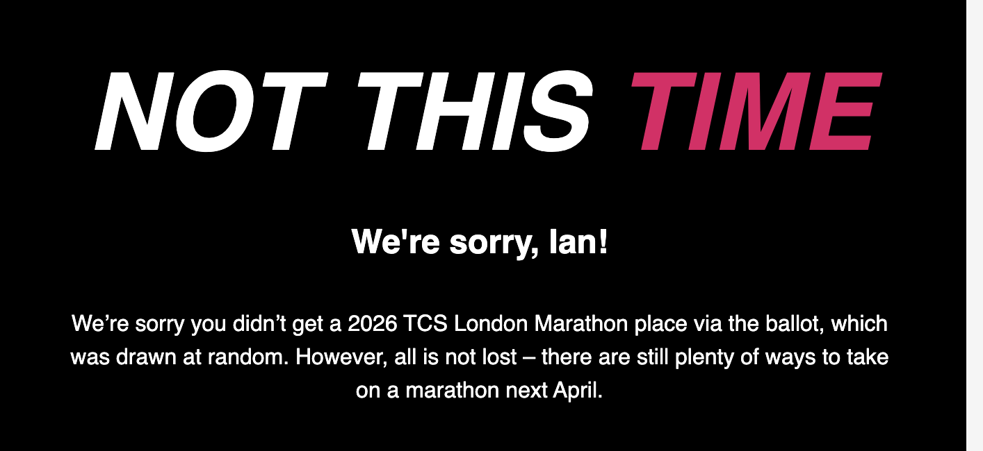 Still nowt… but I did get a last chance to enter Manchester email. Same company… last time that happen the London NOOO! was about an hour later.