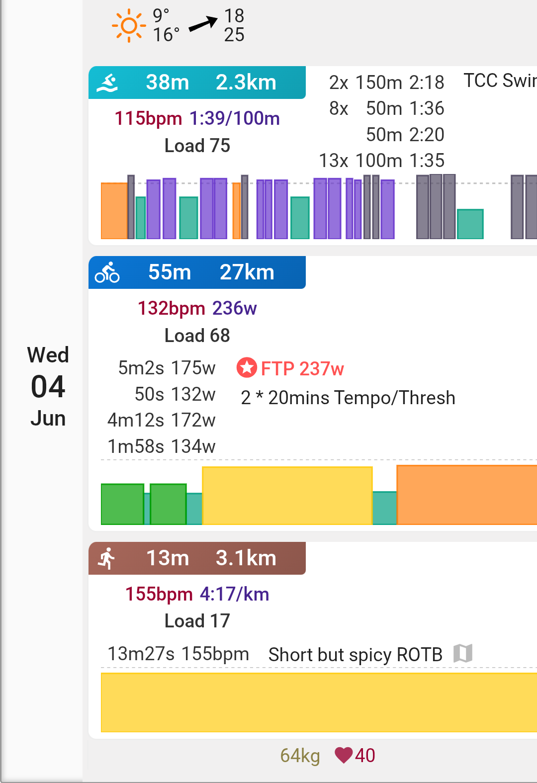 Was pretty determined to still do the run so drove back to the gym and ran round the river, I decided I’d try and do at least 4 * 1K reps at about 4:40k pace for a hopeful 70.3 pace, got them badly wrong at 4:27k pace