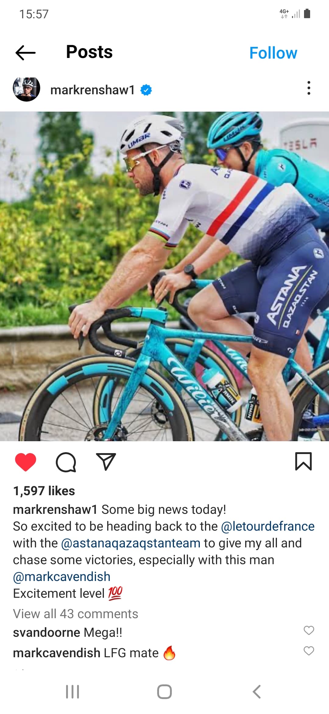 Ah slightly misleading headline - Renshaw is joining the coaching team as a sprint consultant, not a rider ![]()