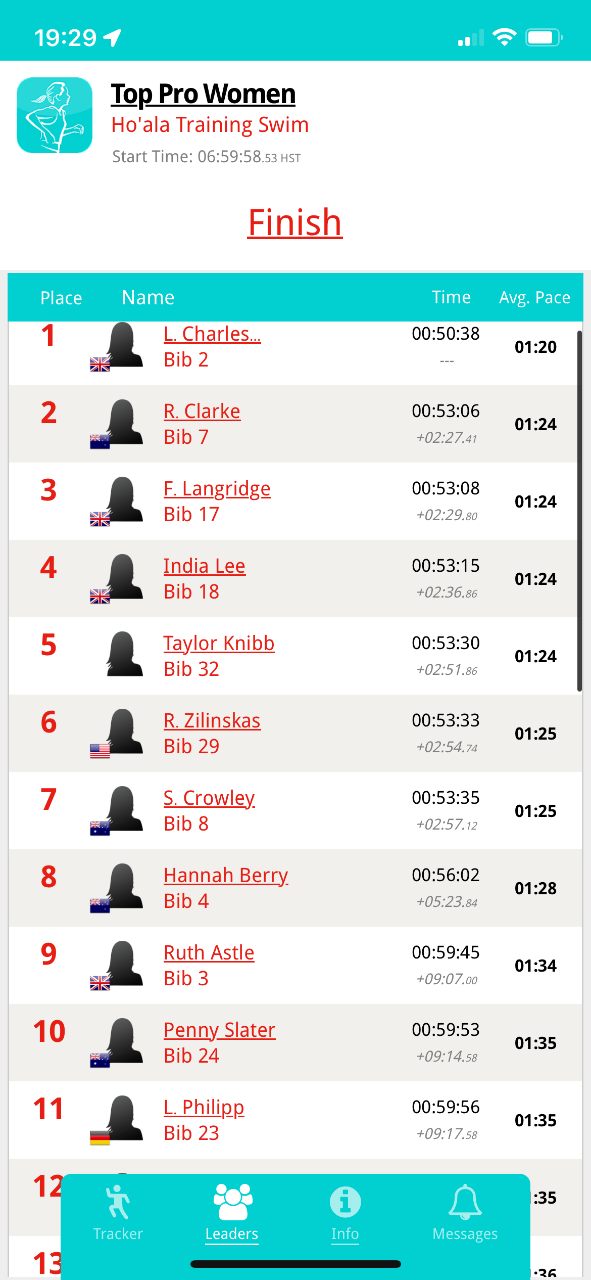 Some results for you. Kat Matthews decided not to take part. She didn’t say why (on instagram).