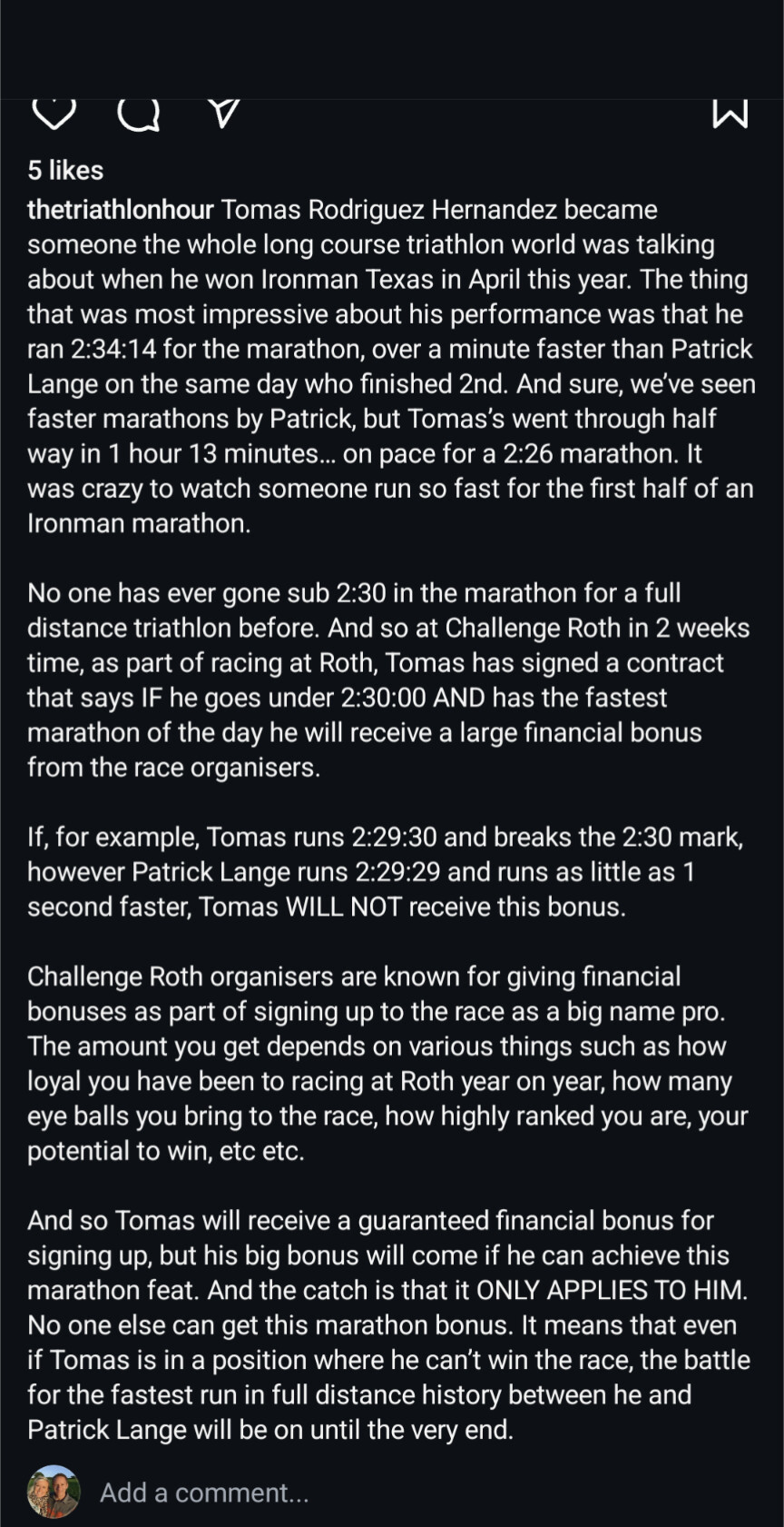So he’s incentivised to gently commute to T2, have a nice rest, perhaps a brief massage, then hit the marathon hard as possible…