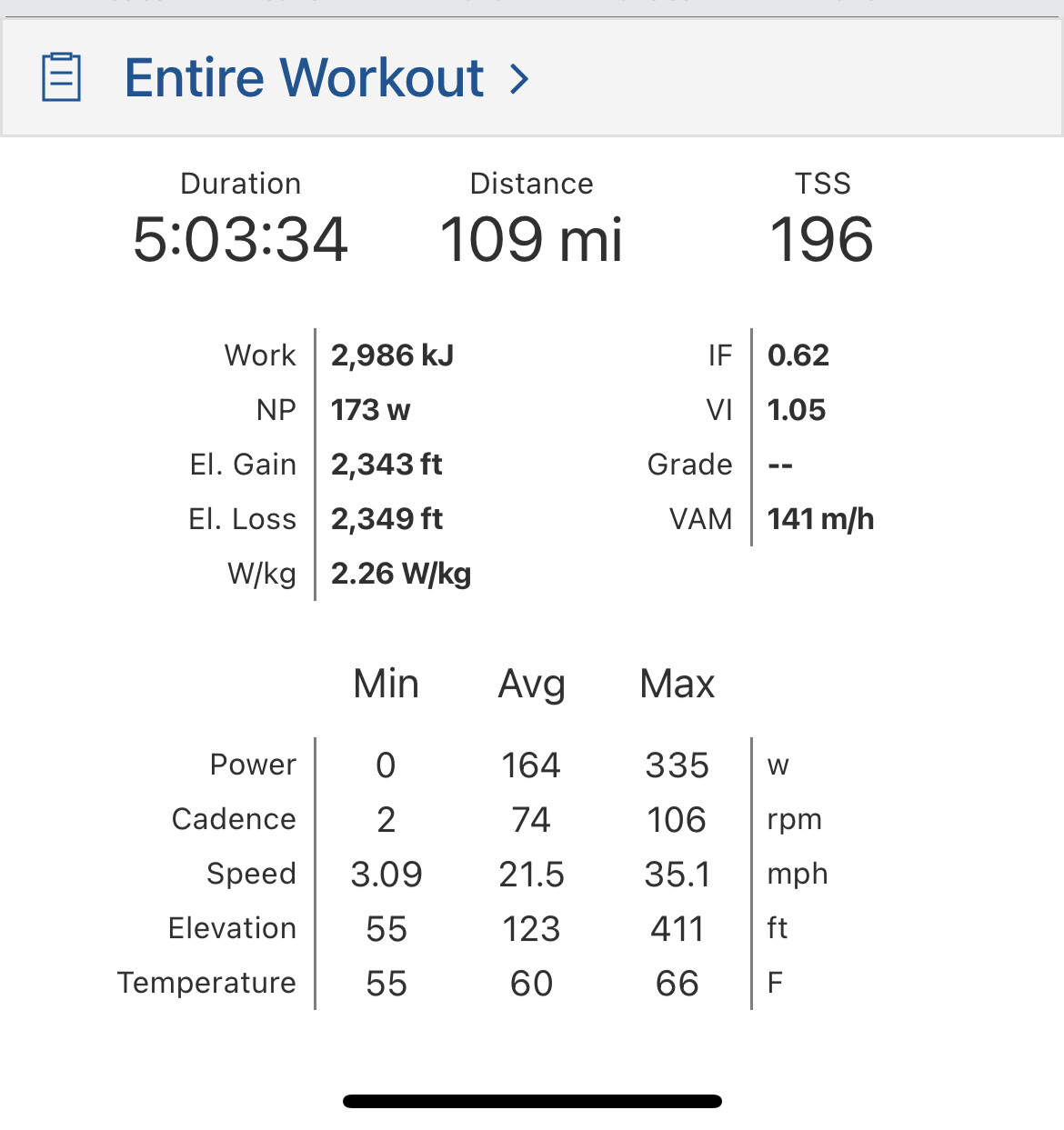 5:32 off 170w is not that out of the ordinary surely? It’s 20 mph which road bike aero-ness for a 70kg rider on a good flat route which I thought Outlaw was (unless my calculations are off somewhere)? Remember it’s loads more watts to go 5 from 5.5 than it is to go 5.5 from 6.