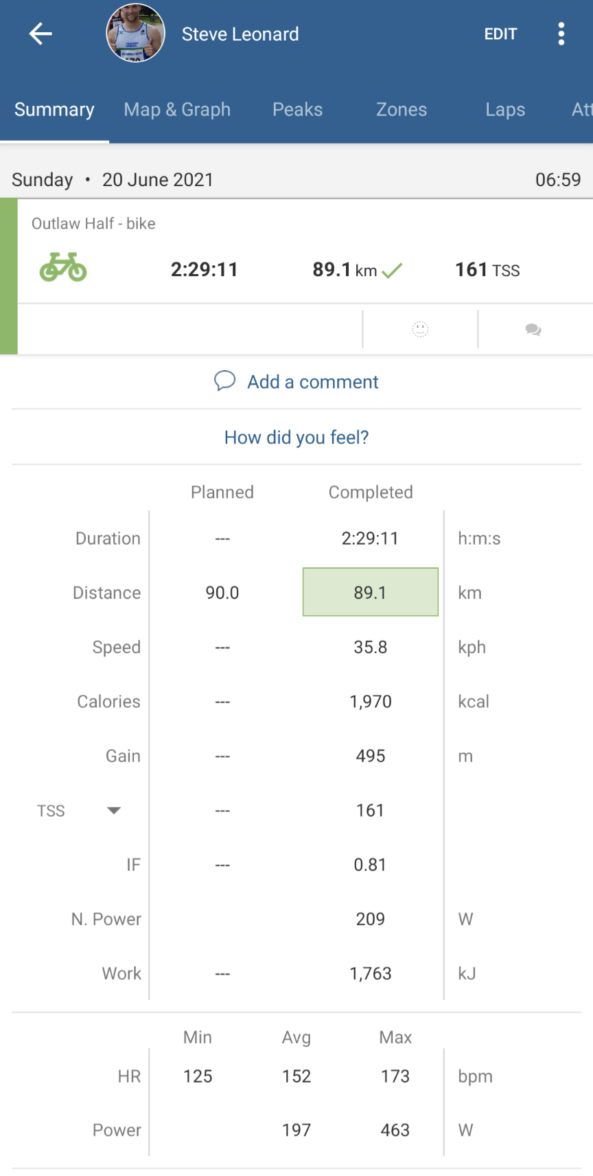 5:33 at Lakesman off 166w - wouldnt say I was particularly aero either.