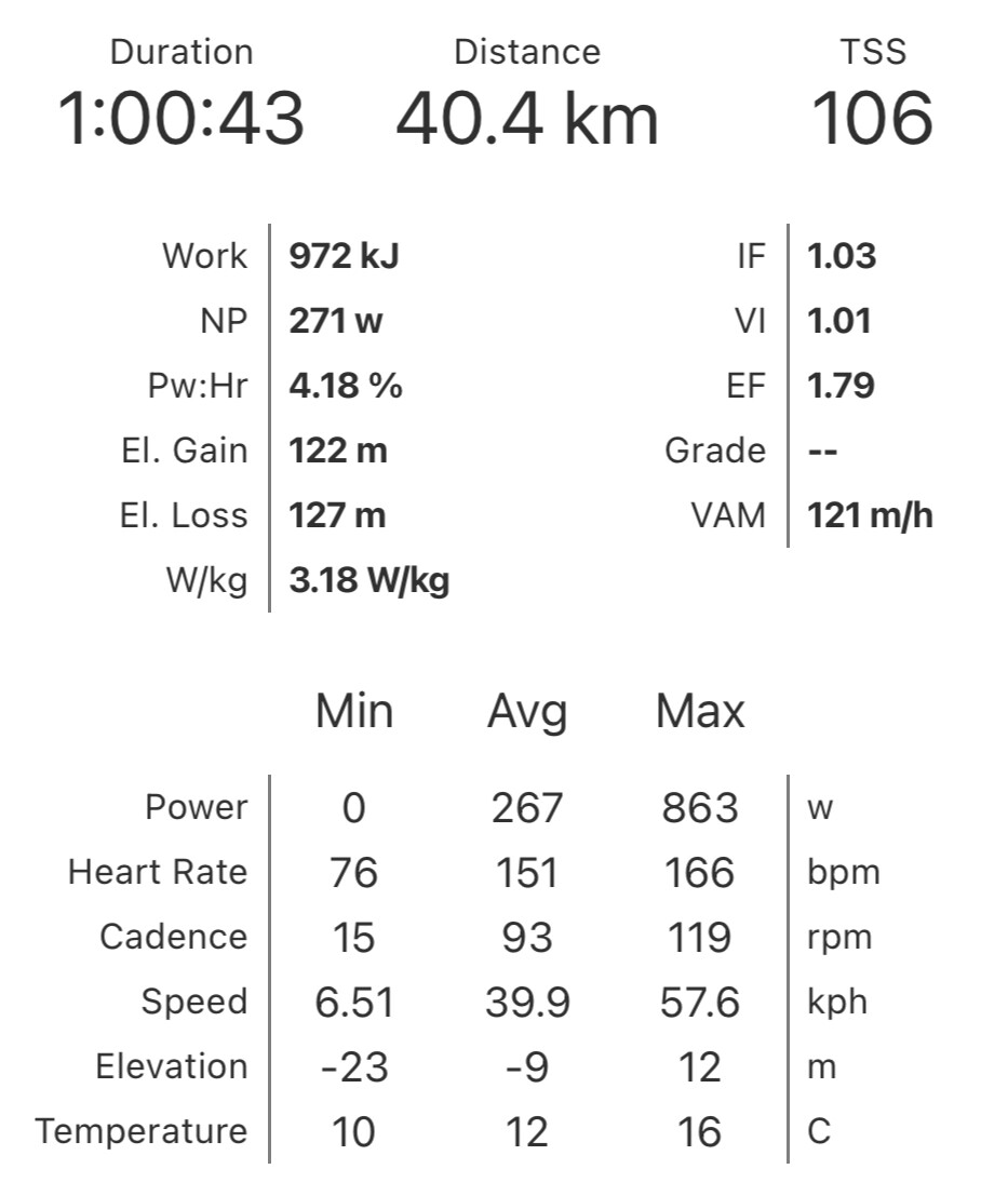 I know I’m a shorter person, and therefore slightly more aero as a result of that, but your power to speed ratio does seem a bit low. I didn’t think the road surface at Outlaw was too bad tbh.