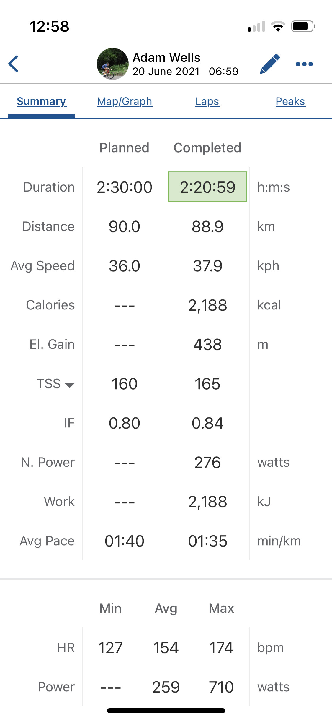 Obviously different days, so conditions could play a part, but for the same power as you I’d have ridden 4:58 if I’d just doubled up my half time last year (I clearly couldn’t have actually done that, but that’s sort of irrelevant)