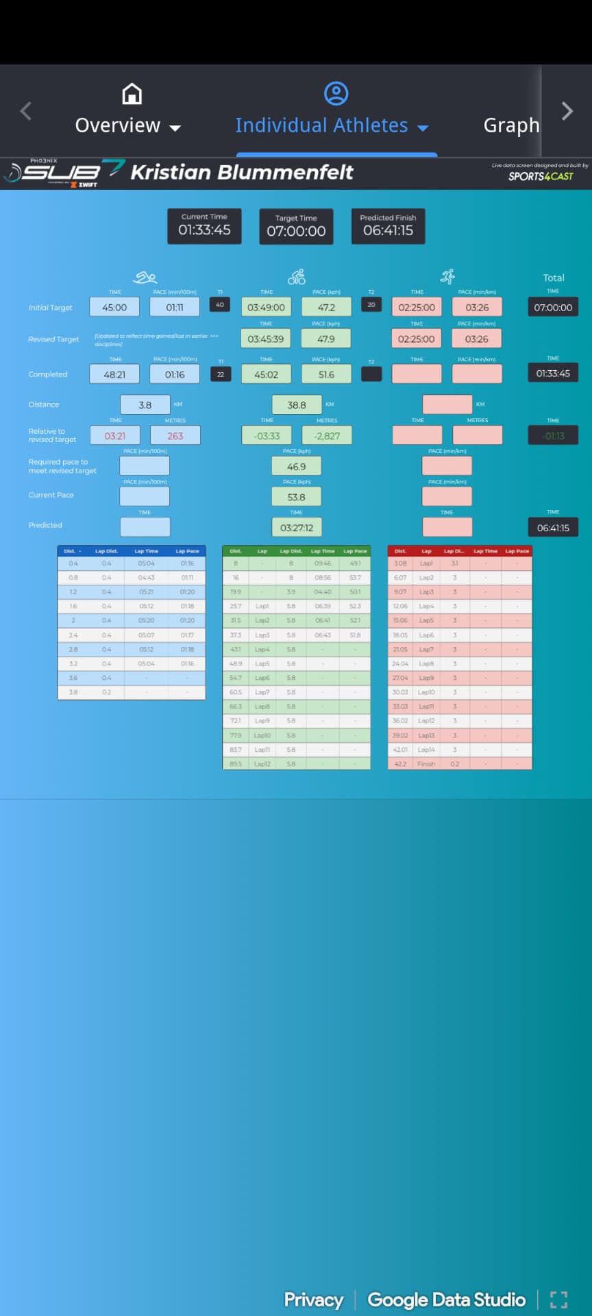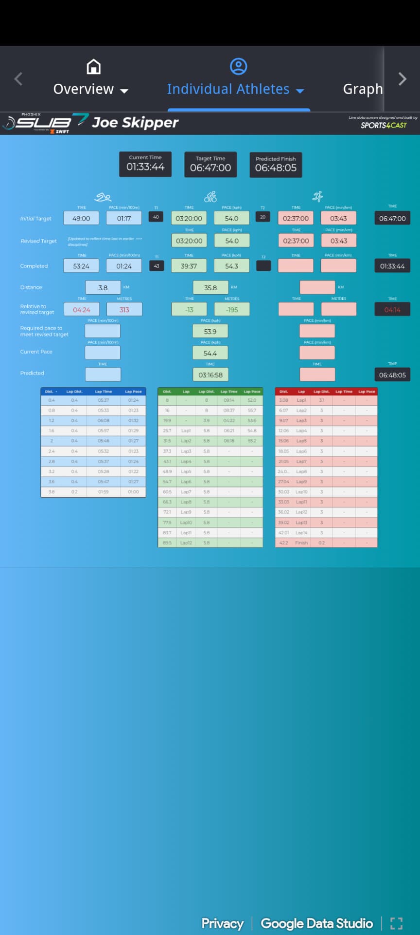 The data on the website is pretty good. You can see actual lap splits. Joe about 22s per lap faster.