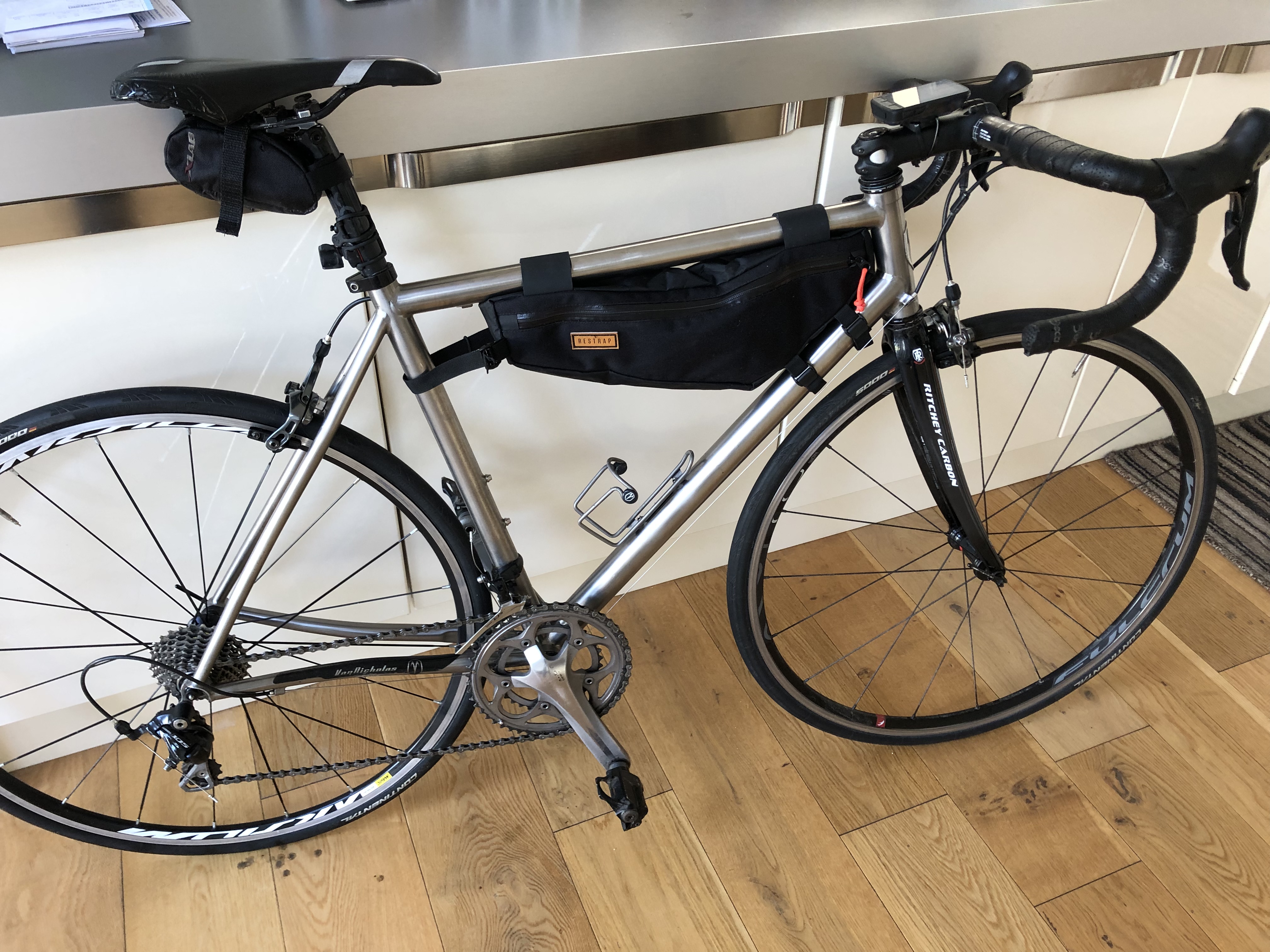 Dug out my frame bag for tomorrow’s audax. A little overdressed as I could probably get away without it, but might as well start practicing with some of my kit. Thankfully spotted that my rear wheel bearings where completely shot and had a spare wheel to throw on. Could have been interesting if it had failed in the middle of nowhere.