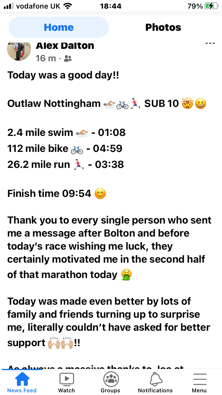 After 2 years I’d forgotten how bastard tough iron distance racing is; slowing but ticking along nicely with 10:20 odd in range then absolutely detonated at 22 miles odd.