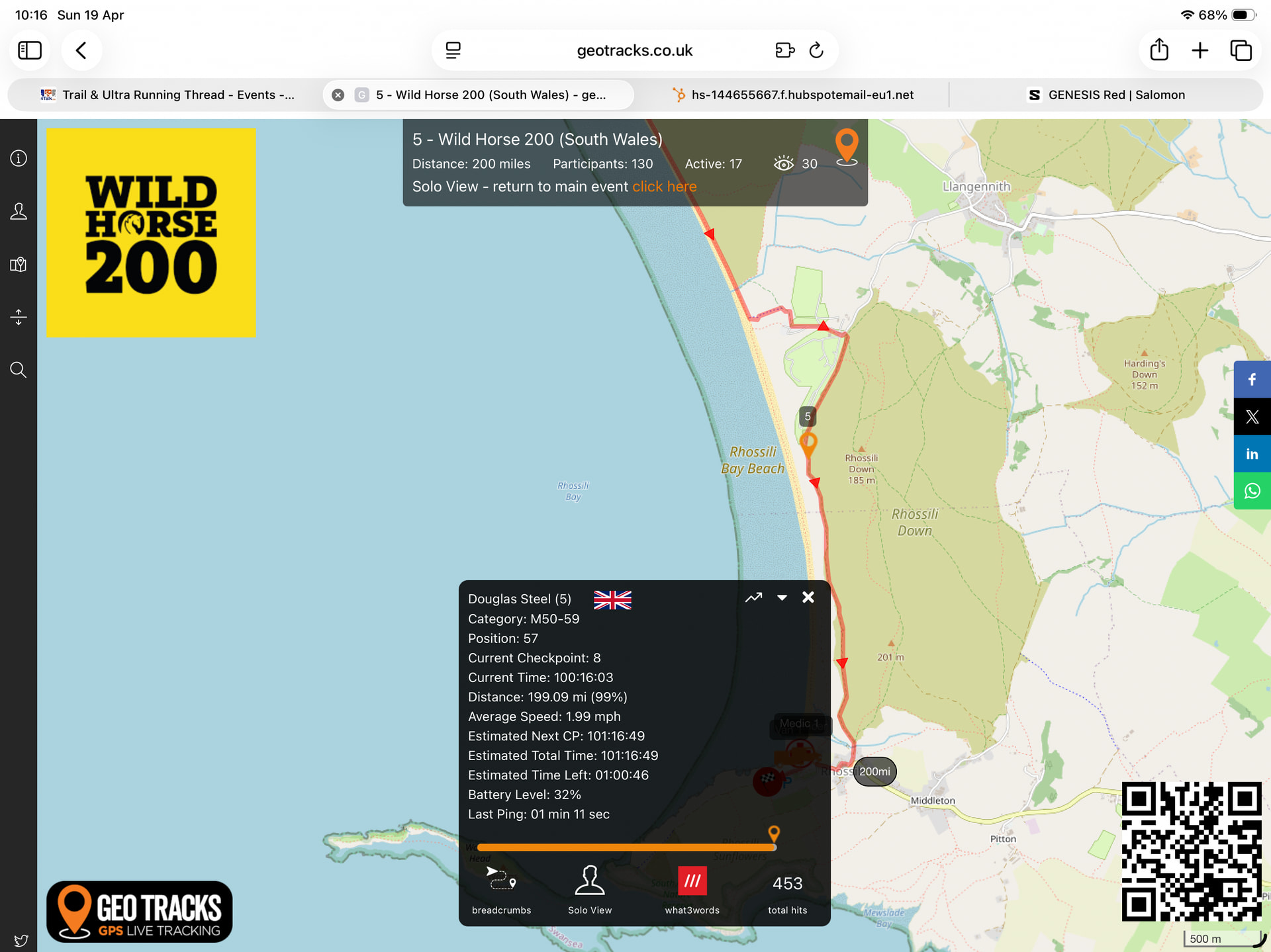 I had planned for this year to be an attempt at going long and had entered the Northern Traverse (300km/190miles), I had previously done the Lakes Traverse (1st 100km of the route) and had good experience of Ourea events, so was a we bit shocked to find that with 2 weeks to go Ourea had home bust and the race was cancelled. I’d heard good things about the Wild Horse 200 across south Wales so when I saw it was only 2 weeks later and still open for entries, I put my entry in.