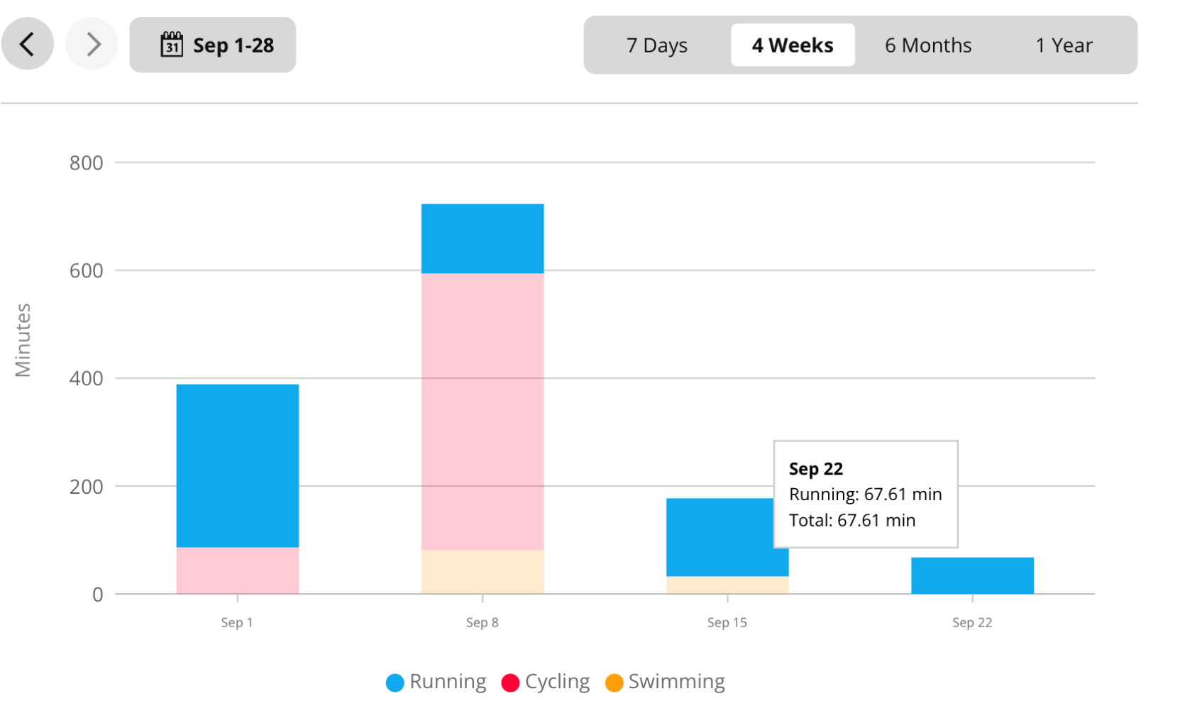 Two days sick where I just went for a gentle walks, four walks over the week of about 26-27 minutes each, hence the 1h41 other (walking.)