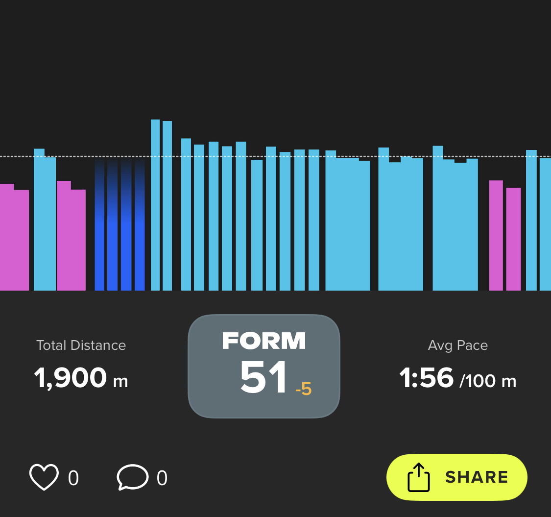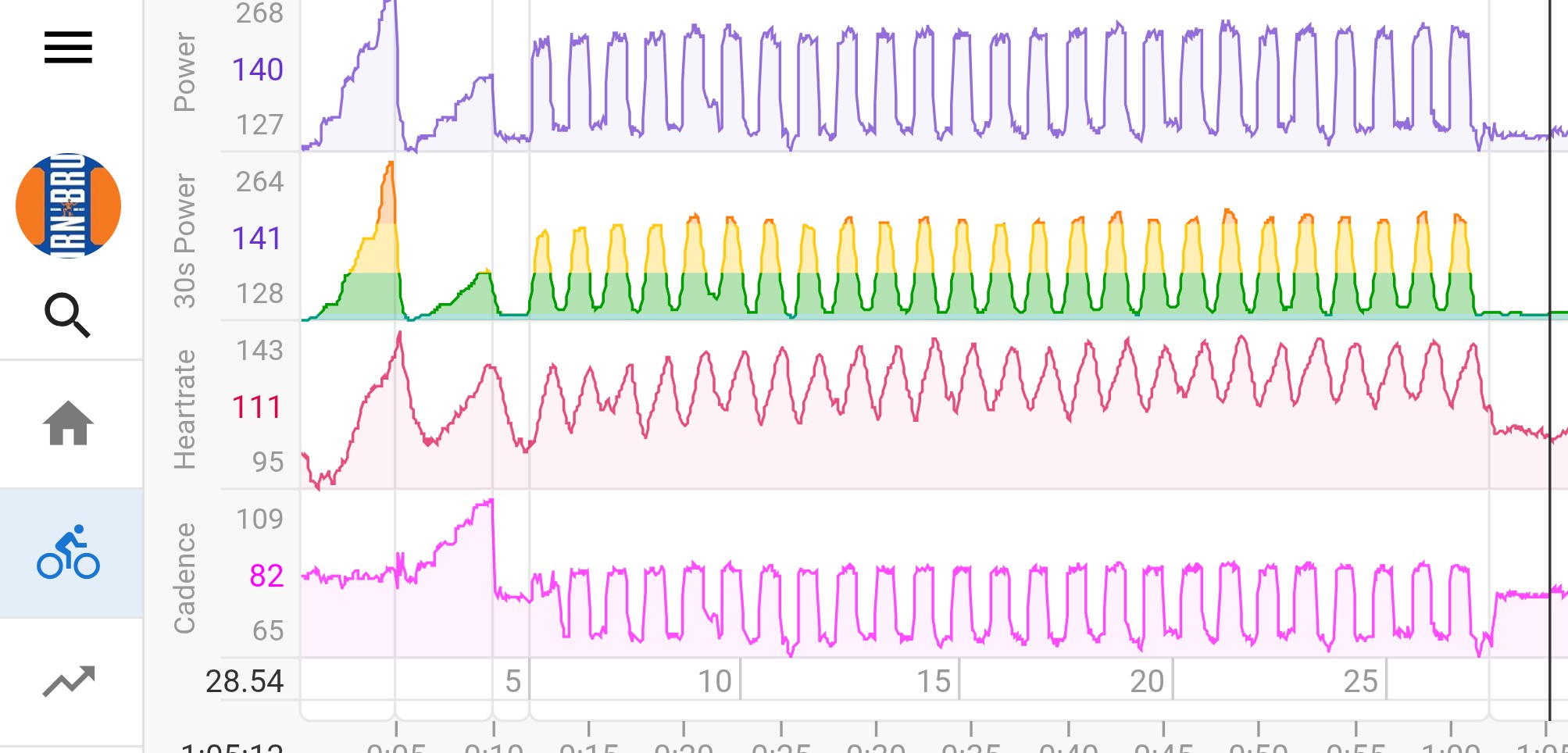 Funkiest graphics this week was a - not really - recovery turbo session that included 25(1min @150/1min @230)