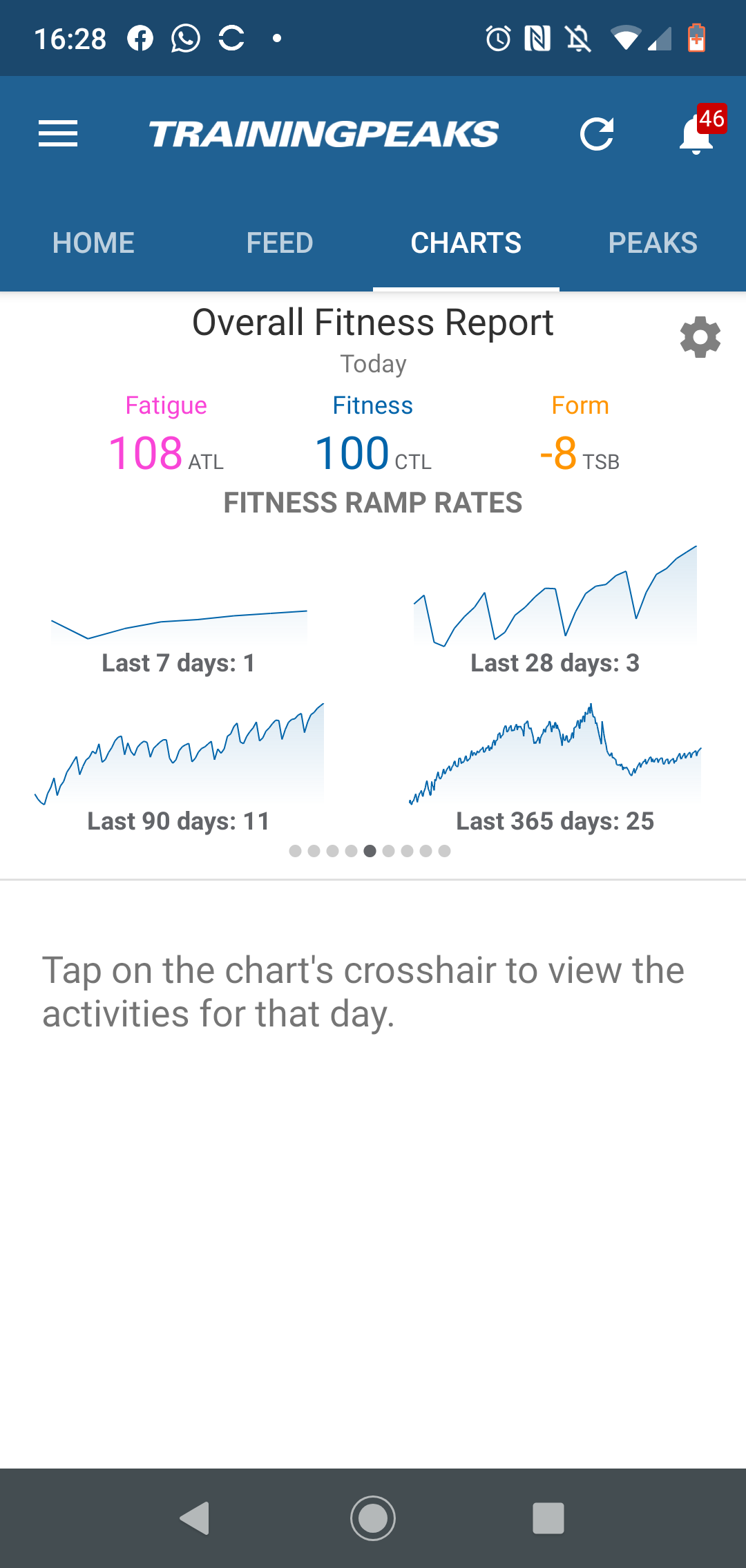 Here’s my last year. I hit 120 on my last day of IM training after a block of four 16h weeks. I only started using TP last Autumn, hence the 365 day chart.