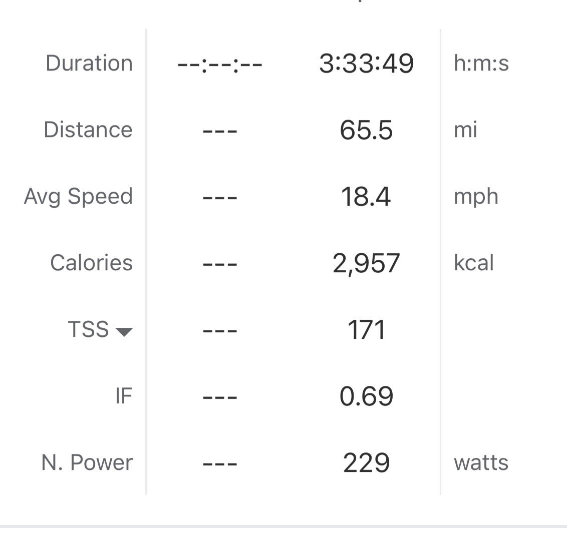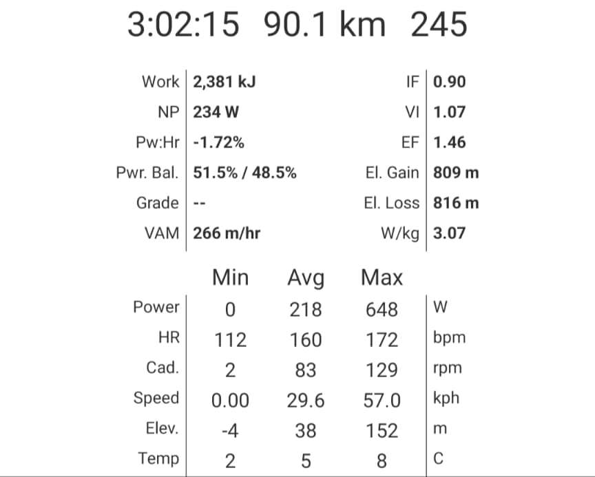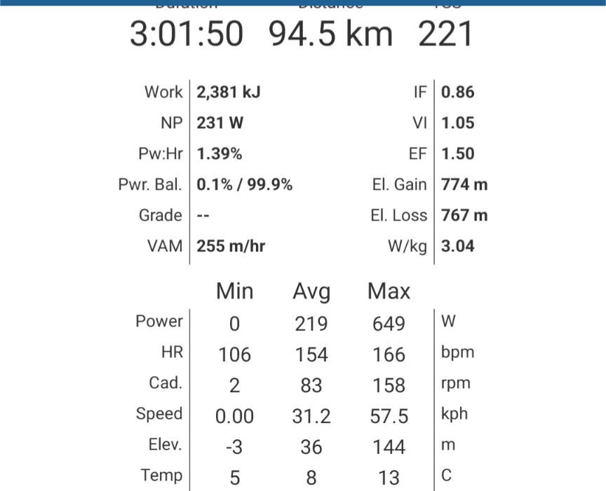 Still, thatâs 3 hours at 234NP in the legs. Thatâs banked at least. Had a bit of a low week last week, and itâs holiday this week, so will be low again.