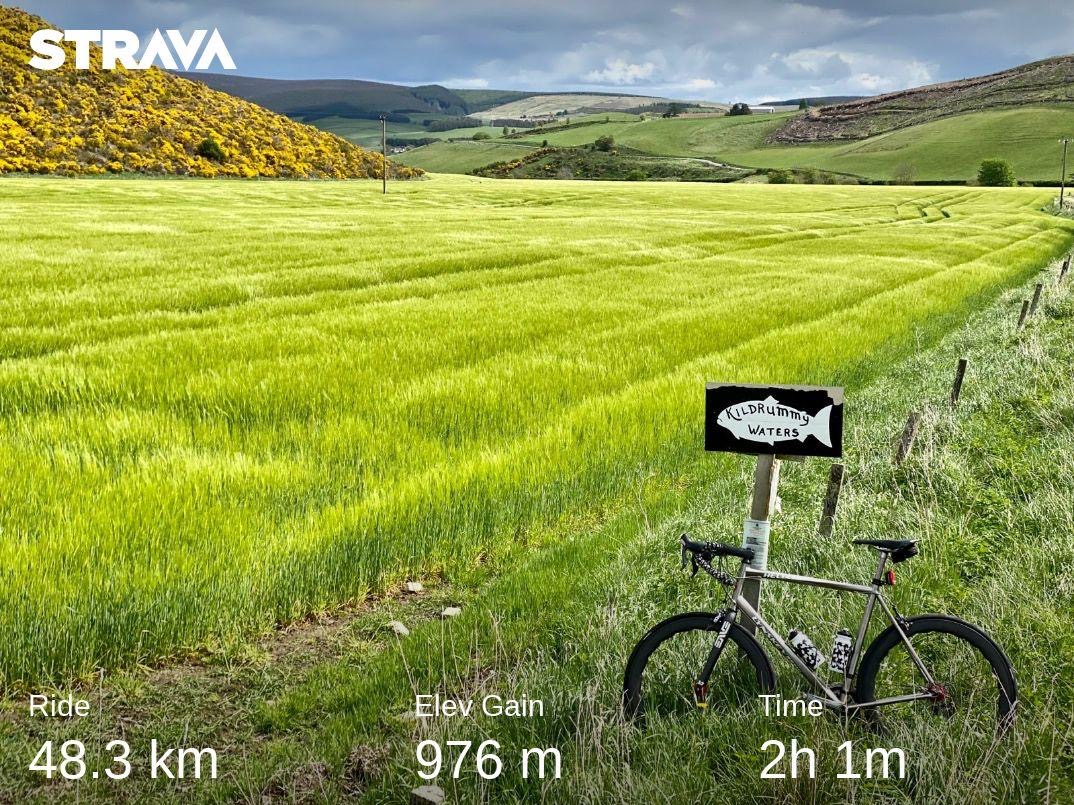 First puncture in years. In an expensive latex tube too (do folks patch their latex tubes?). I had to pause to remember the steps so it meant a 9 min pit stop, including swapping valve extenders, which is shockingly slow. But otherwise a lovely ride on the winter ravaged roads of Donside.