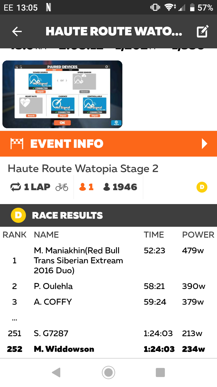After realising I had no resistance at the first little climb a reboot cost me 500 places, halfway up the alp my connection dropped again losing few hundred more. Highly frustrating.