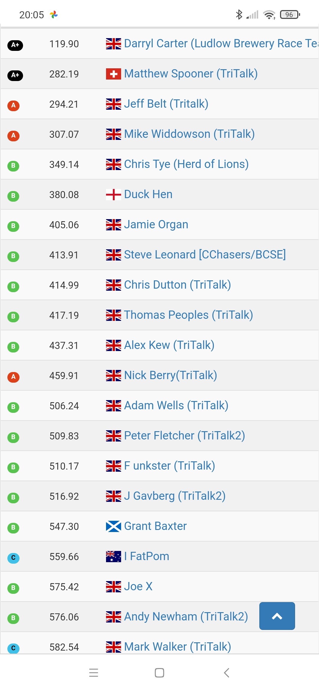 So using an example of a race between all 29 ZwiftPower Tritalkers: