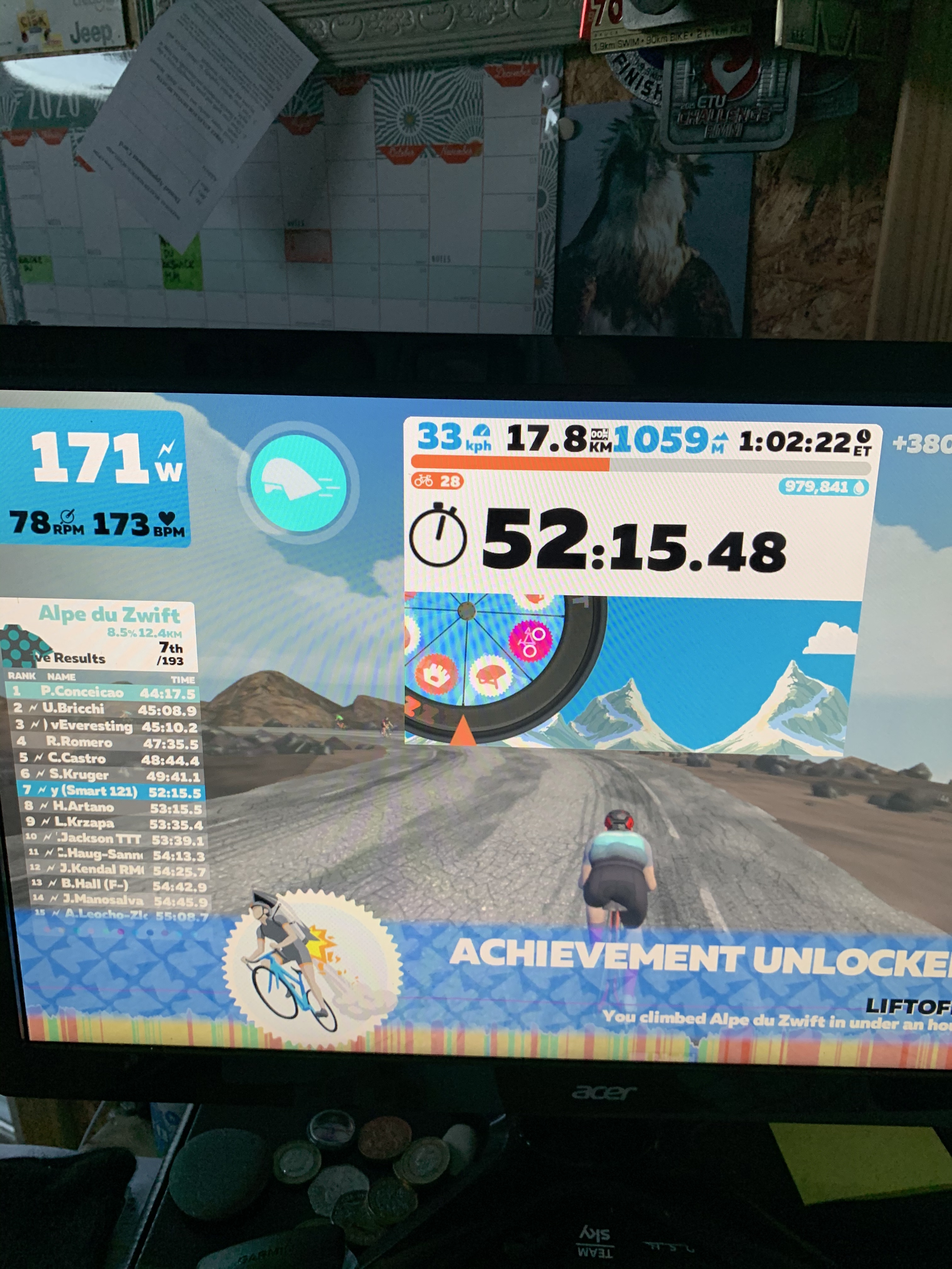 I forgot I did my 2 x 15 just yesterday lunchtime, so that was tough! Legs were like jelly coming back up to the house. 240w avg over 1hr 20mins. So about 94% ftp.