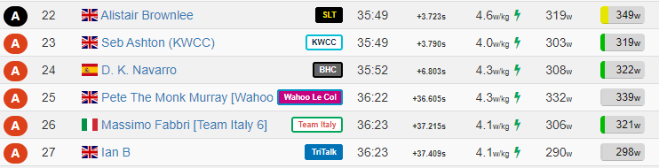 Shaping up nicely for 12.20; there are now 3 better ranked B riders on the start list, including Tim Martin who I managed to hold-off last week. If I can at least beat one of them.
