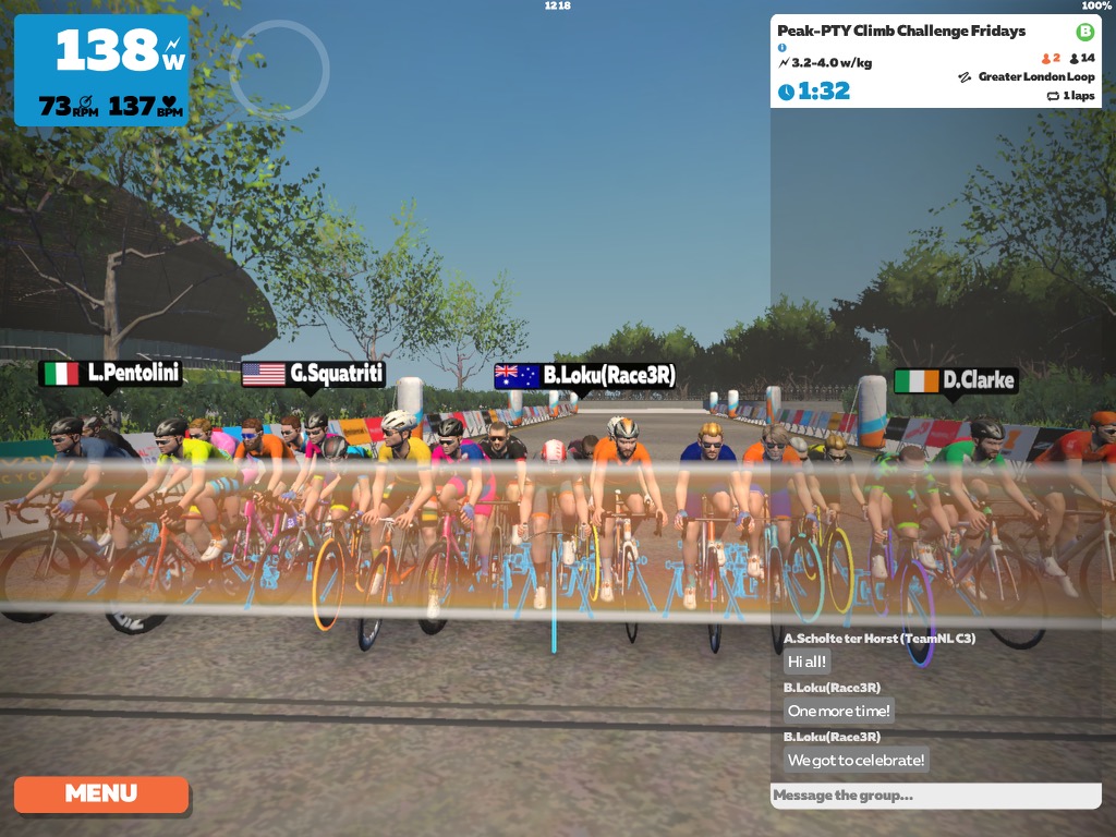 After Box just myself - Martin and Jc contesting for minor places - I used my feather on the escalator and just went from there. They reeled me in just after Tower Bridge and rolled over the line ahead.