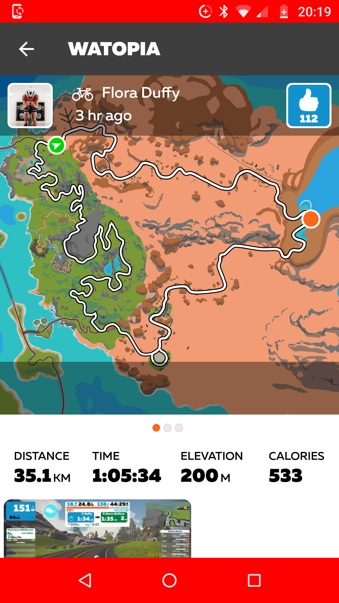 Was riding Muir and the mountain, about 7km in along came a cyclist F Duffy with a Bermuda flag. We were both riding at a similar speed. Im assuming it was Flora Duffy but if so she must have been having an easy Sunday ride. Whereas I was basically bleeding out of my eyeballs to stay in her draft.