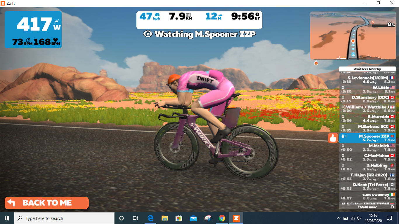 Was it Tempus Fugit? If so, just login to zwift, click to ride in Watopia, and then on the companion app got to their profile and choose fan view of either Matt or Poet to then watch them riding