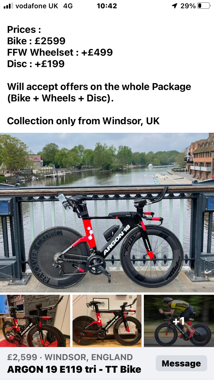 Talking to a lad who bought the vitus tri bike with discs off the e bay wiggle site it needed a chainset and a saddle ( it was unridden?!)